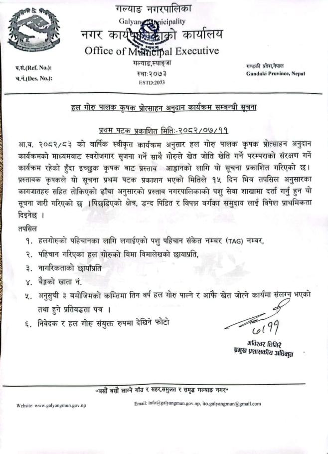 » हल गोरु पालक कृषक प्रोत्साहन अनुदान कार्यक्रम सम्बन्धी सूचना