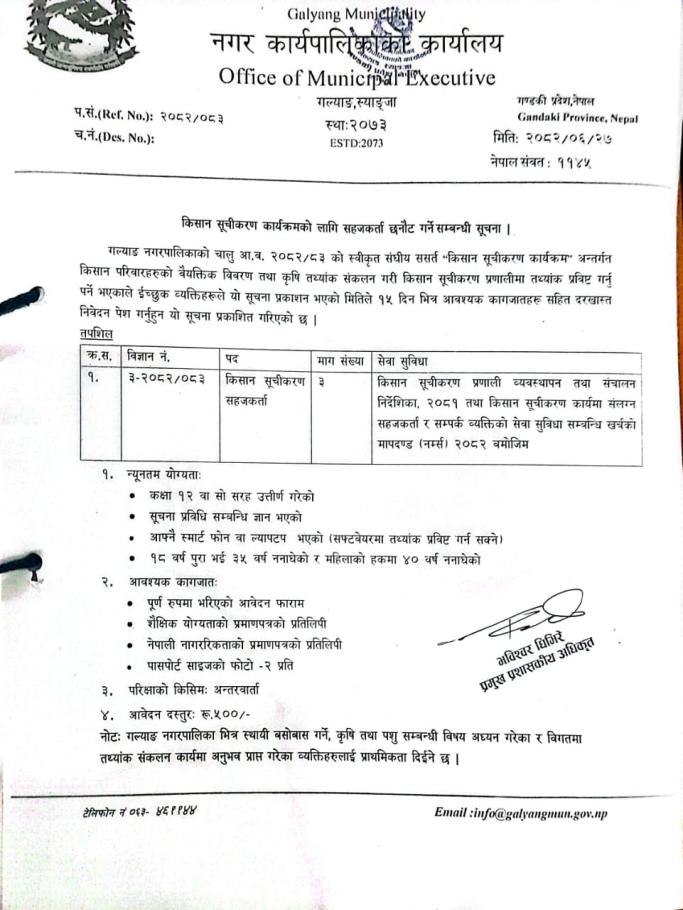 किसान सूचीकरणको लागि सहजकर्ता छनौट गर्ने सम्बन्धि सूचना