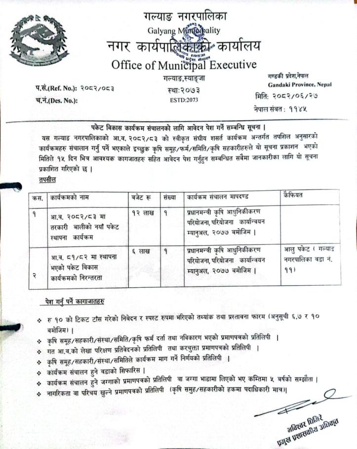 पकेट विकास कार्यक्रम संचालनको लागि आवेदन पेश गर्ने सम्बन्धी सूचना