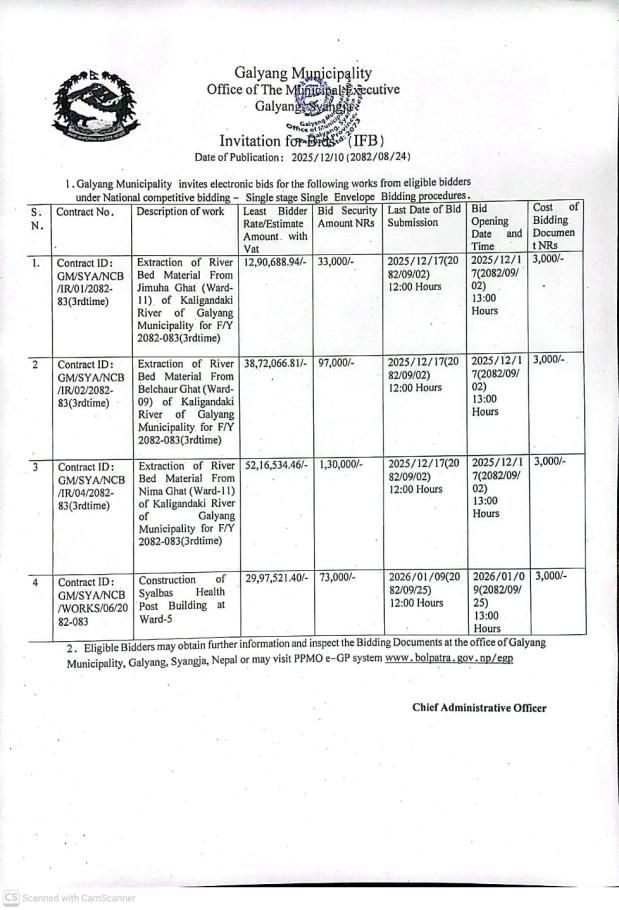 सार्वजनिक खरिद/बोलपत्र सूचना